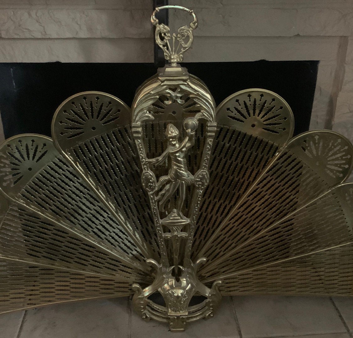 Vintage Brass Fireplace Screen Fireplace Fan Art Deco Peacock Etsy Art deco fireplace