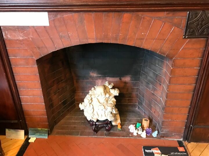 Herringbone pattern subway tile fireplace hearth and surround update. Herringbone fireplace