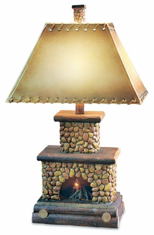 Adirondack Cabin Stone Fireplace Lamp by naturalglowlighting